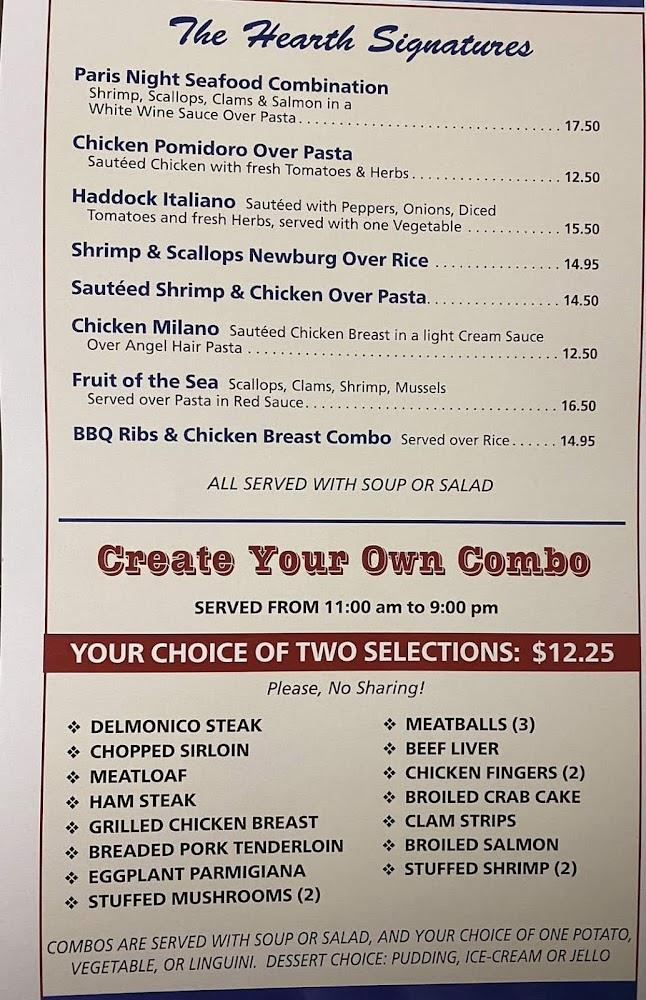 The menu at The Hearth Family Restaurant is extensive and diverse. Breakfast options span classic dishes like pancakes and omelets, satisfying morning cravings. Lunch and dinner showcase hearty sandwiches, burgers, and local specialties, ensuring variety.